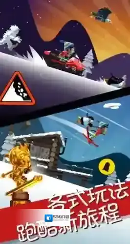 后期才会出现的装备,最稀有也是最强大。滑雪车上可以乘坐三名乘客,除了你之外,还能骑上企鹅,雪人,老鹰,也就是说最多可以承受四次冲击。不过滑雪车最好还是不要让它爆掉,因为到了后期滑雪车就是保命用的东西,雪崩在你的身后猛追不舍,稍不留神就会完蛋。但是滑雪车笨重,很难飞起来,这就要看你的技术如何了。安趣小编教你一个技巧,建议你让滑雪车经常保持喷火焰状态,这样就能冲开你无法飞跃的石头。还有就是要保持滑雪车上高朋满座,这样就可以借助动物来抵消冲击。第一台滑雪车是出现在家里,不要错过。