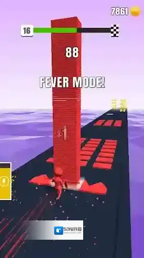 2、不断的升级自己的各项属性,帮助你能更快更准的收集砖块,让你在抵达终点的时候能够获得更多奖励。