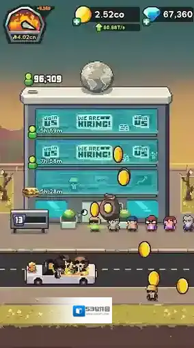 3、雇佣各种独特的自动矿工,自动化你的点击过程,还能不断的升级这些矿工,提高整体的采矿效率。