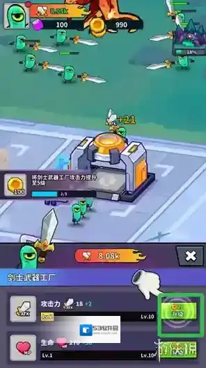 3、消耗金币资源,提升士兵的攻击、防御等核心属性。