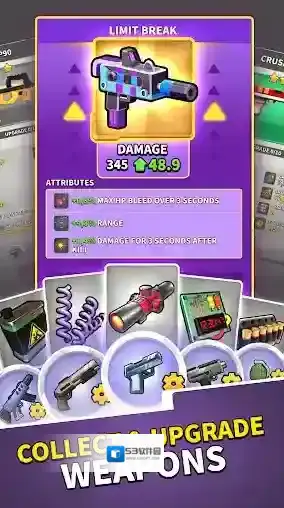 1、通过闯关我们还会获得宝箱奖励,开启宝箱就能获得随机的武器和材料,让你可以解锁升级更多武器,提高火力。