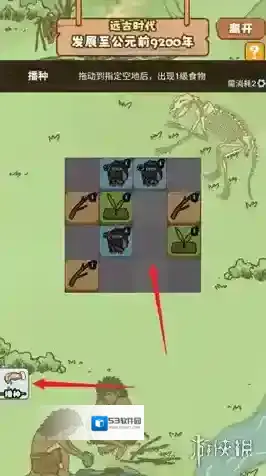 5、在远古时代,玩家自带播种技能。长按技能图标并拖动到空地格即可使用该技能。